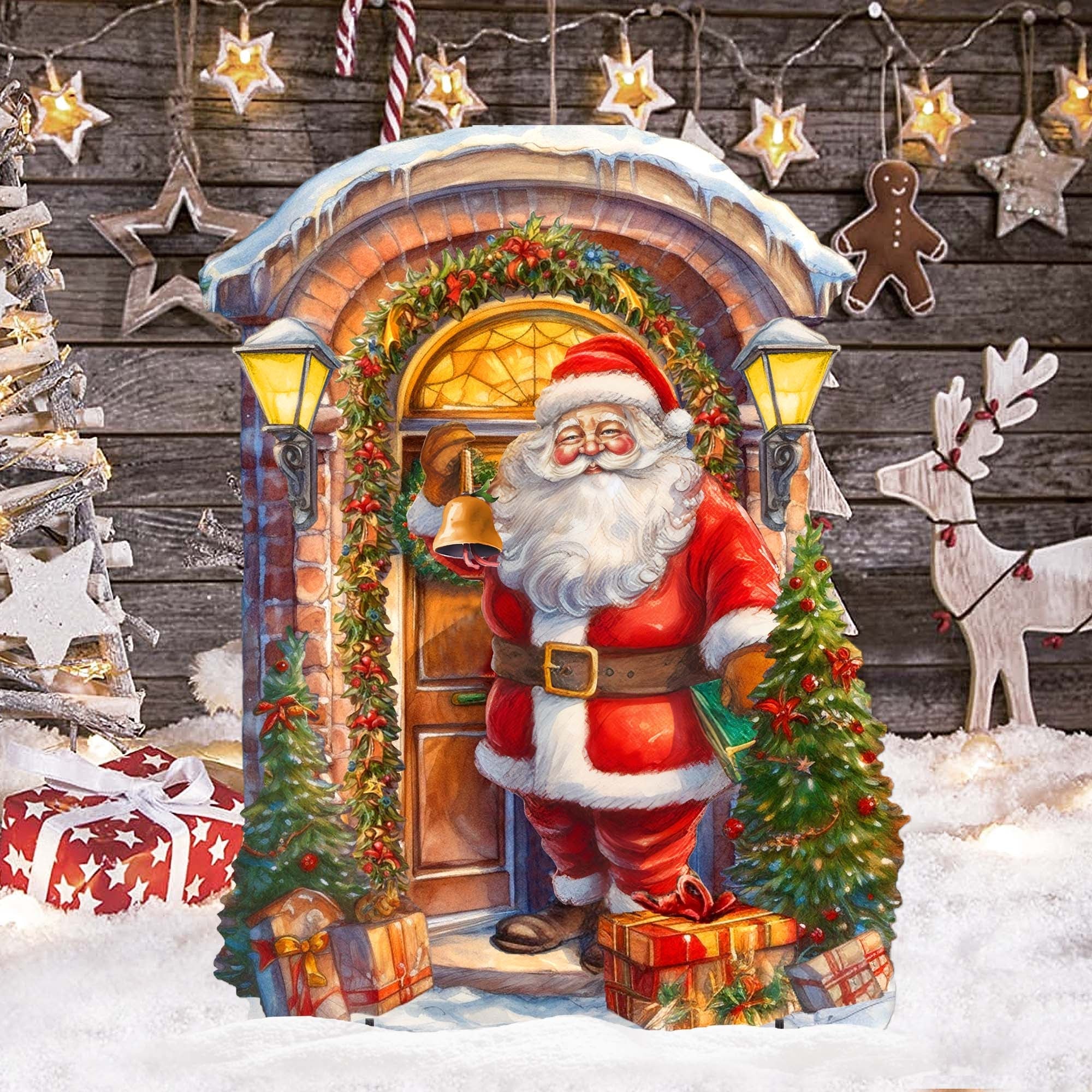 This Knocking on the Door Santa Outdoor Decor will be the perfect addition to your outdoor holiday decor. Made with quality wood, it captures the iconic Santa knocking on your door. Enjoy it for years to come with its durable construction and timeless design. Surprise your neighbors with this classic seasonal look.