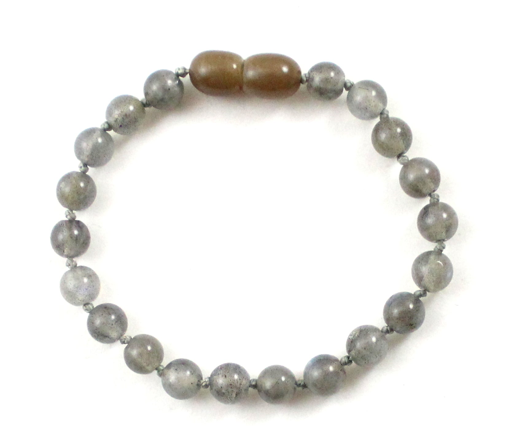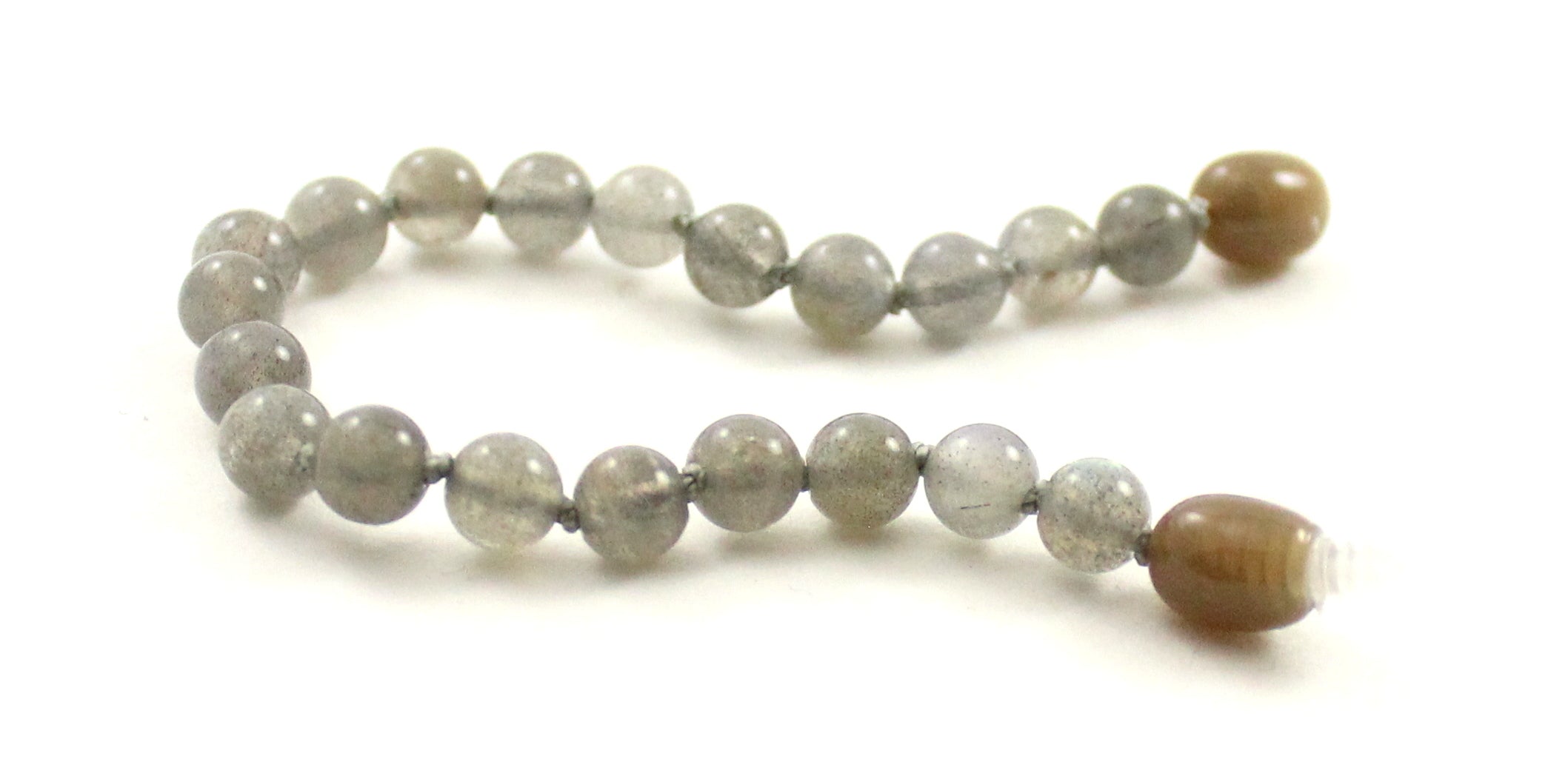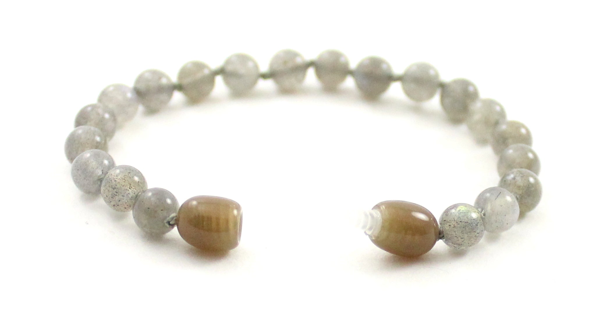 Labradorite Bead Shape: Round (Oval); Bead Diameter: ~6 mm; String: Gray (Polyester 100%); Gemstone Beads: Labradorite; Closure: Plastic Clasp (Screw); Labradorite Color: Gray; Bracelet Weight: ~3.5 g (14 cm); This handmade gemstone... Read more