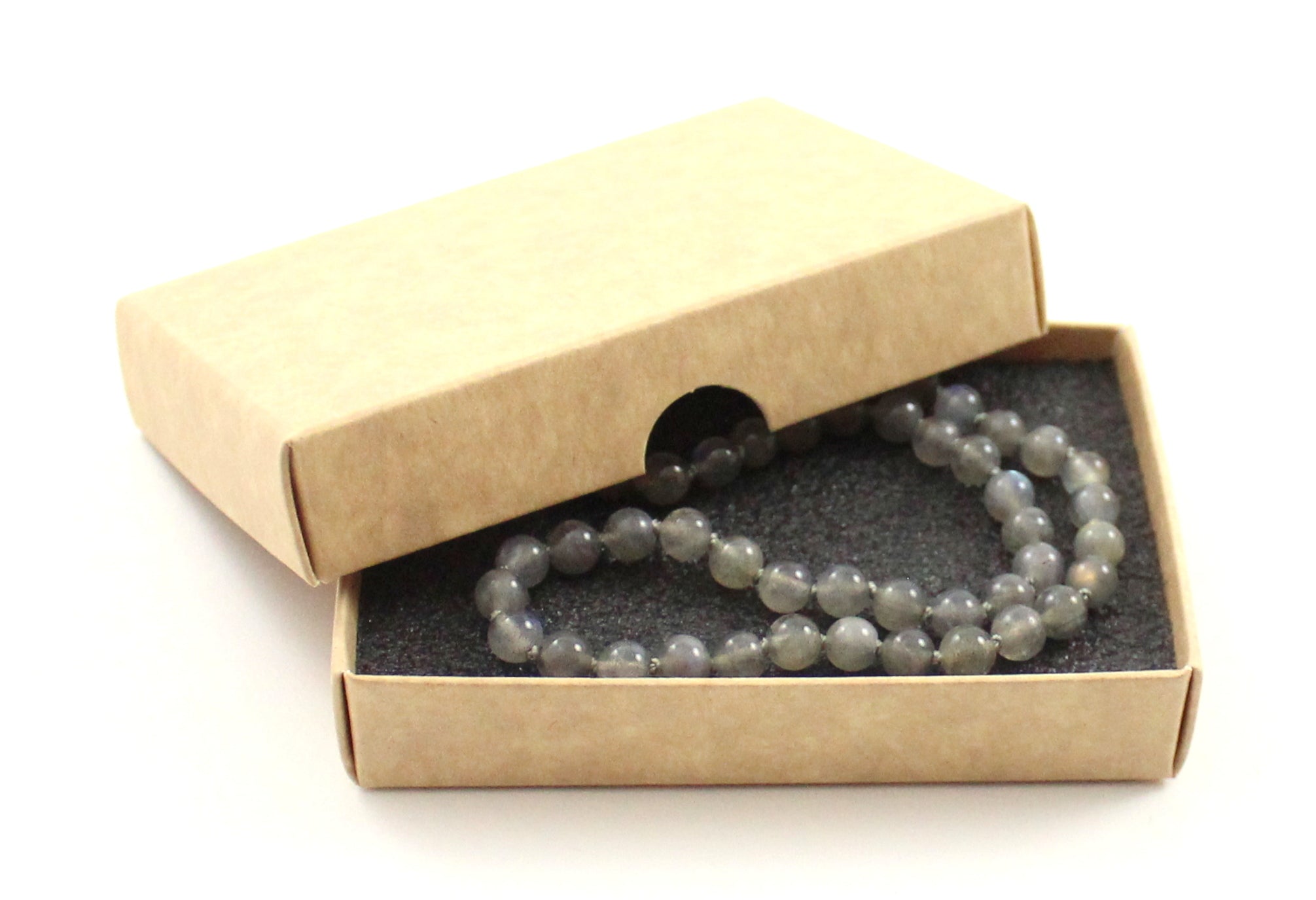Labradorite Color: Gray; Bead Diameter: ~6 mm; Gemstone Beads: Labradorite; Closure: Plastic Clasp (Screw); String: Gray (Polyester 100%); Labradorite Bead Shape: Round (Oval); Necklace Weight: ~7 g (32 cm);... Read more