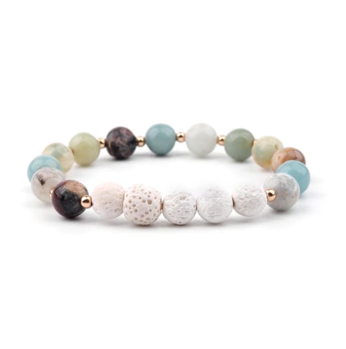Lava Stone Essential Oil Bracelet - Amazonite and White 5