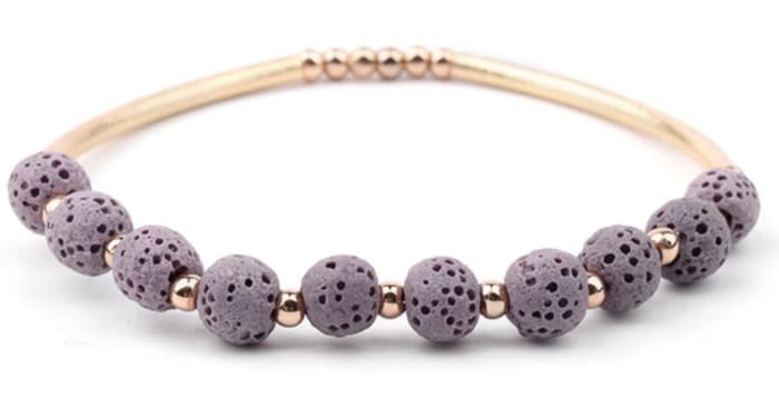 Lava Stone Essential Oil Bracelet - Purple Lava Stone and Gold