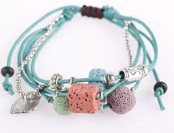 Lava Stone Essential Oil Bracelet - Teal Lava Charms