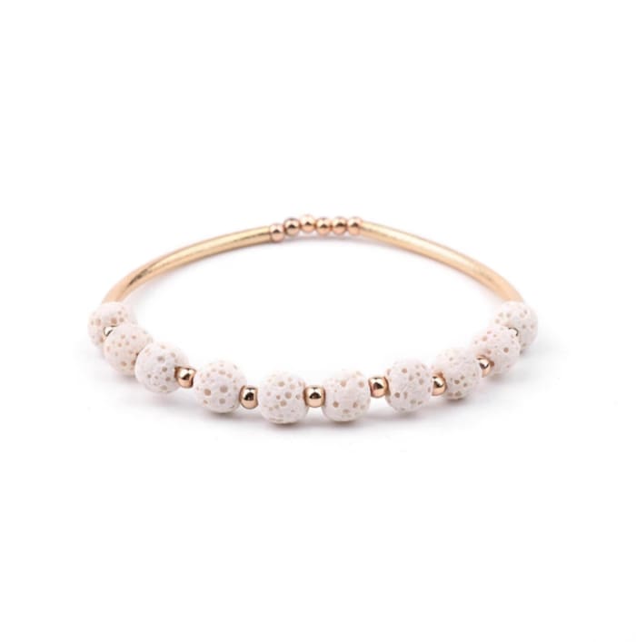 Lava Stone Essential Oil Bracelet - White Lava Stone and Gold