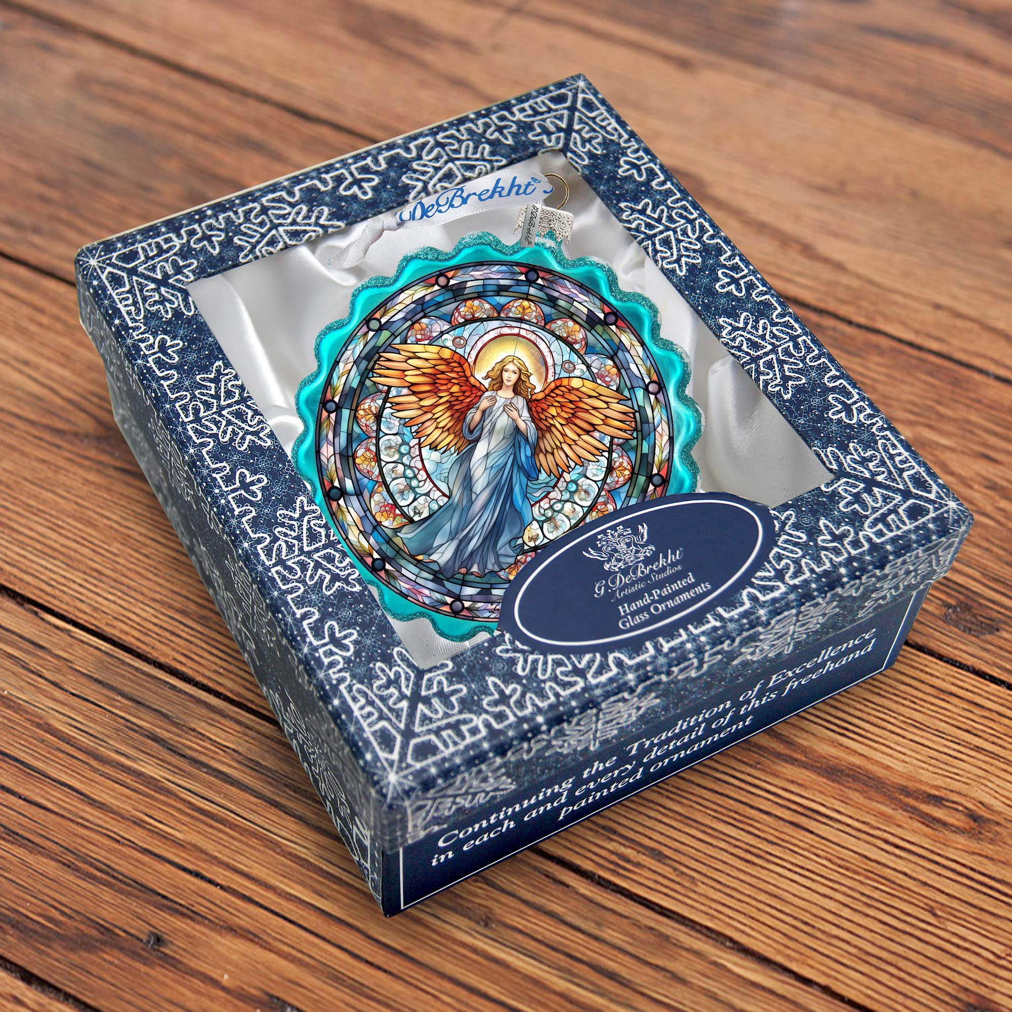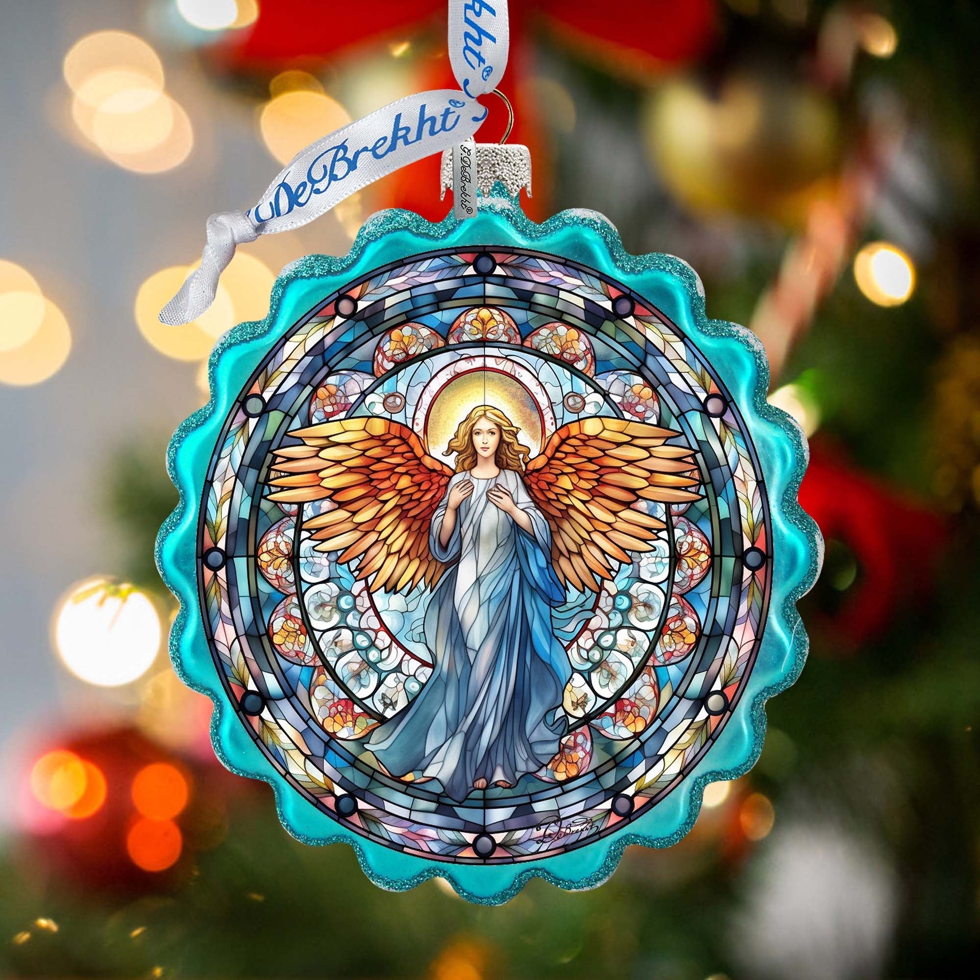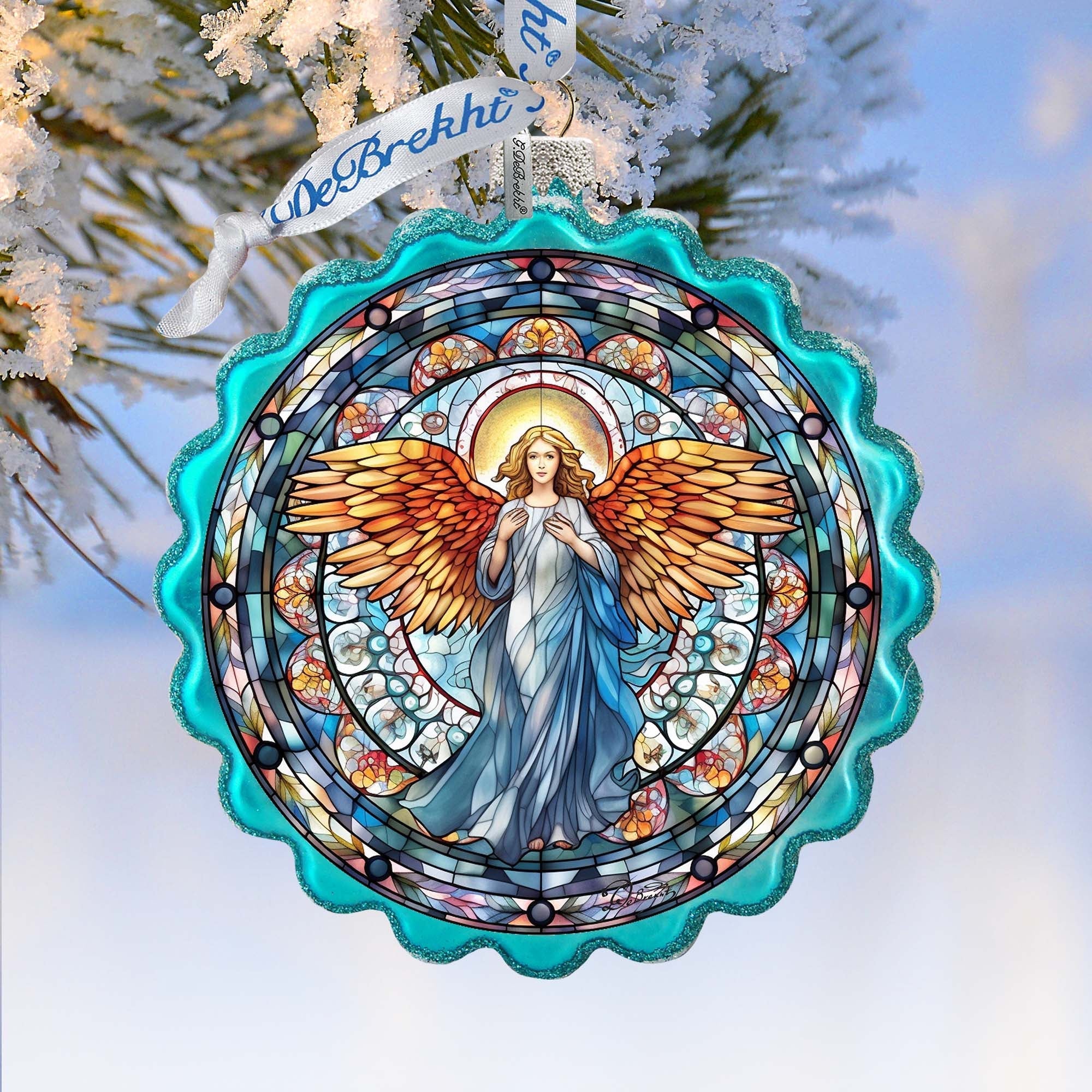 This Guardian Angel Wreath glass ornament by G. Debrekht is perfect for adding a touch of elegance and class to your holiday Decor. Intricately crafted from glass and detailed with a shimmering gold border, this beautiful protection icon will remind your family of the truly special season.