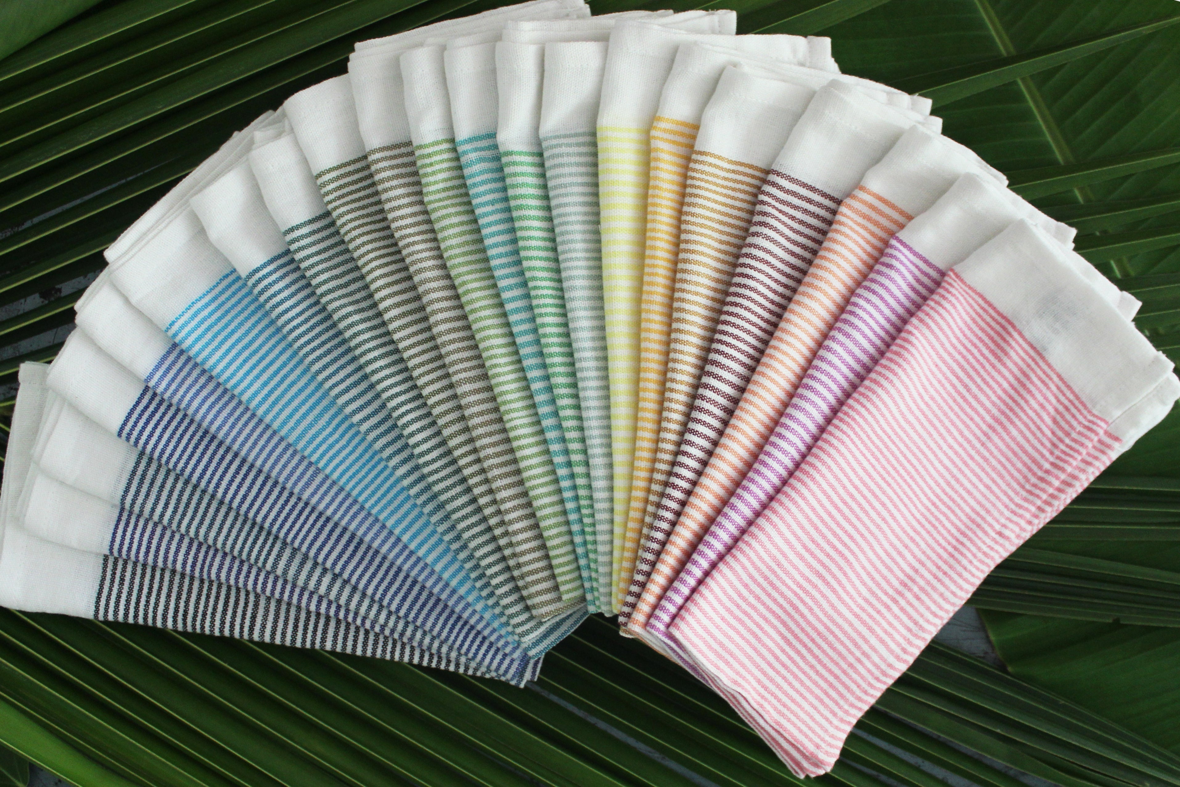 Our third fabric reimagined in this classic pinstripe pattern in a rainbow variety of hues. Each kitchen towel has a... Read more