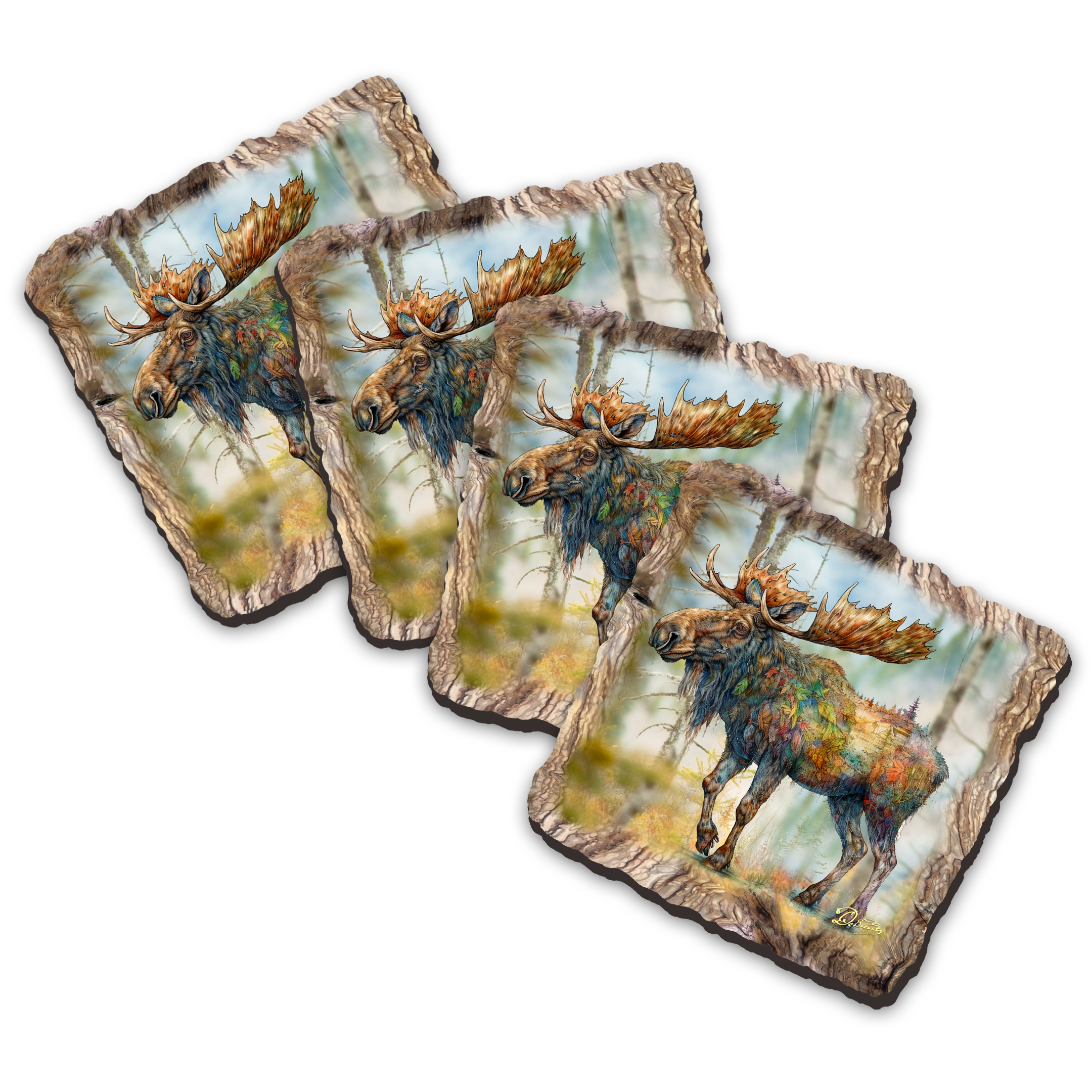 Moose Wooden Cork Coasters Gift Set of 4 - 95390C-S4