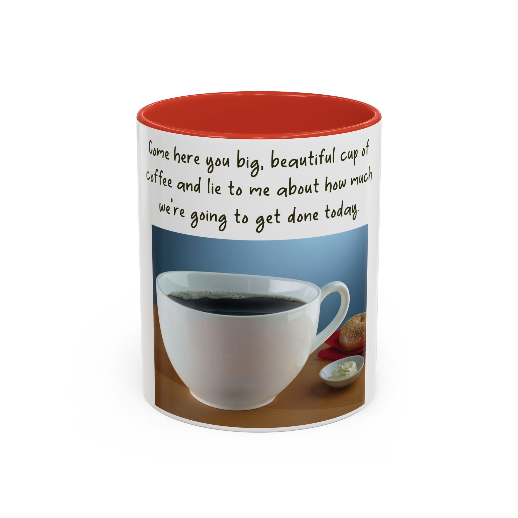 Enjoy your favorite hot beverage in style with this vibrant Accent Coffee Mug. Made from high-quality white ceramic, it features a striking colored interior and handle that adds a pop of color to your mornings. Whether you're sipping coffee, tea, or hot cocoa, this mug is perfect for kickstarting your day with motivation. Its whimsical design and catchy phrase bring a light-hearted vibe, making it an ideal gift for those who cherish their coffee ritual. Perfect for coffee lovers, busy professionals, or anyone who needs a little daily encouragement. Celebrate occasions like birthdays, holidays, and even "just because" moments with this delightful mug that radiates positivity and fun!