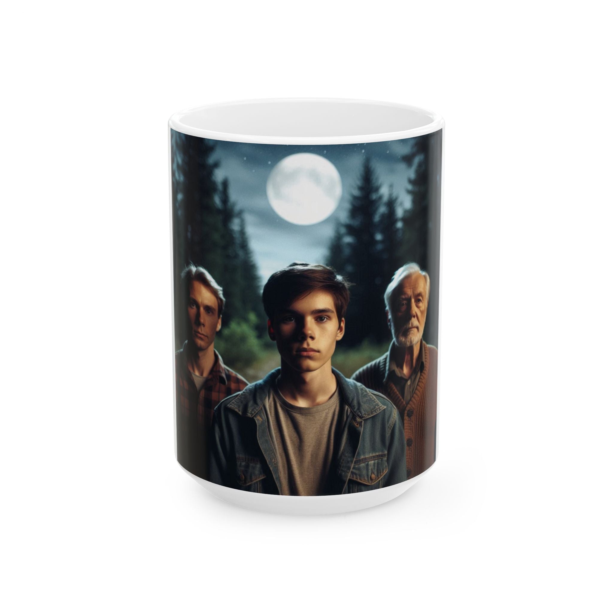 Add a touch of mysticism and elegance to your daily rituals with this Ceramic Mug, showcasing a stunning AI-generated artwork inspired by the Wiccan God in his three aspects: the Youth, Father, and Sage. Set in a serene forest clearing beneath a luminous full moon, the design beautifully captures the balance of youth, maturity, and wisdom, while the moonlight’s gentle glow emphasizes the connection to nature and spiritual energies of the night.