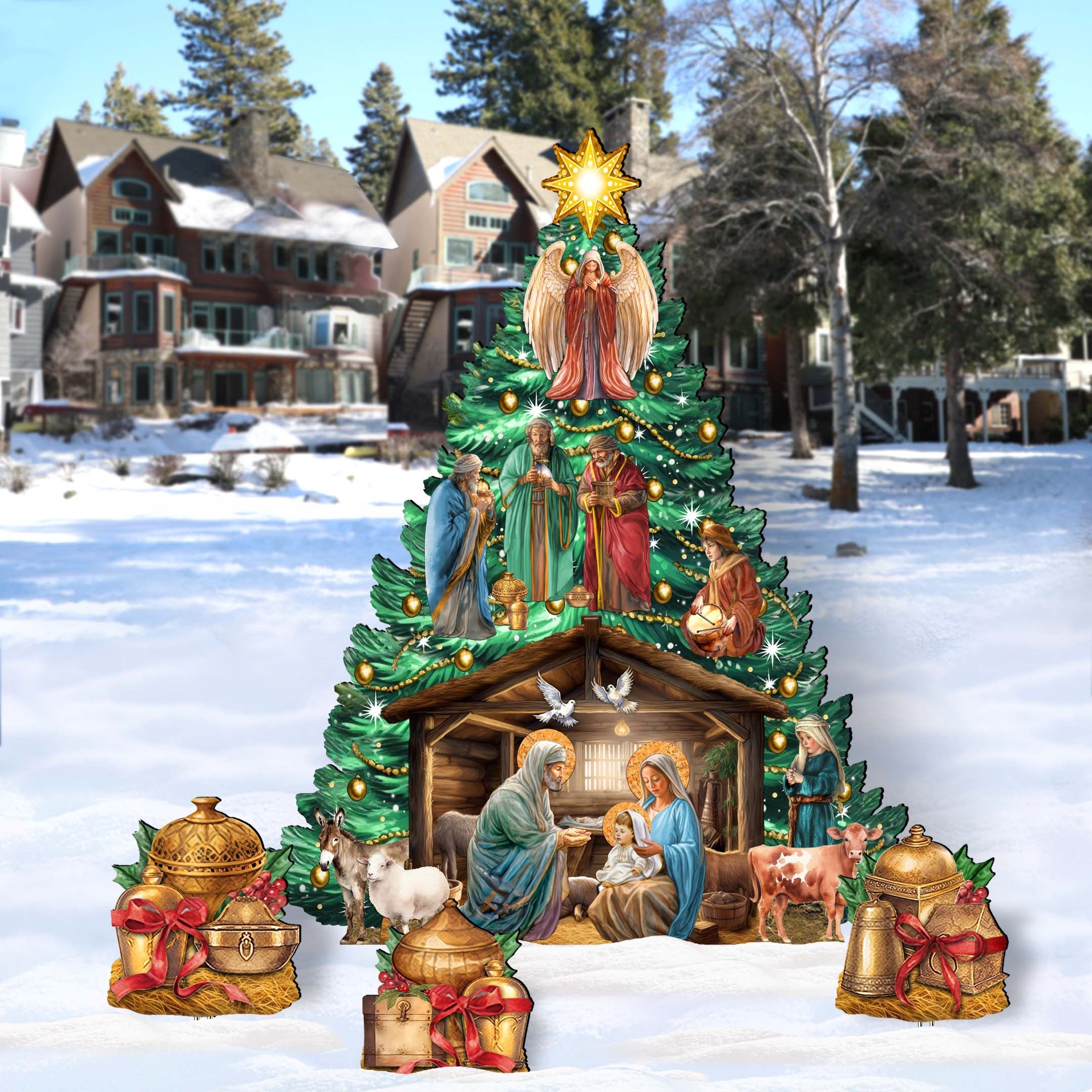 G. Debrekht's Twelve Days-Themed Christmas Tree Outdoor Indoor Decor is the perfect addition to holiday festivities. The wooden tree stands 32 or 48 inches tall, offering festive joy to any outdoor or indoor decor. Its unique design and quality craftsmanship will bring your holiday season to life.