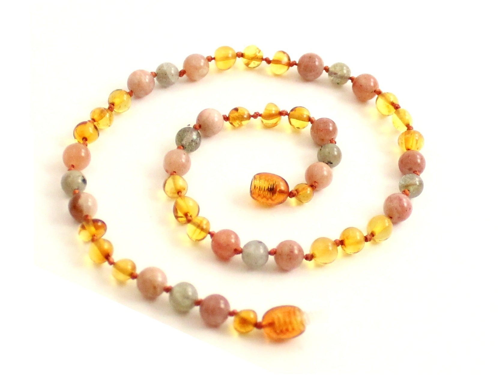 Gemstone Beads: Sunstone (Pink) and Labradorite (Gray);