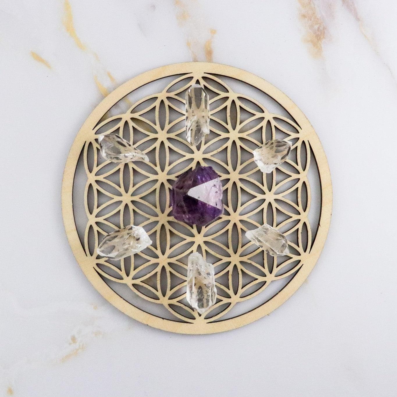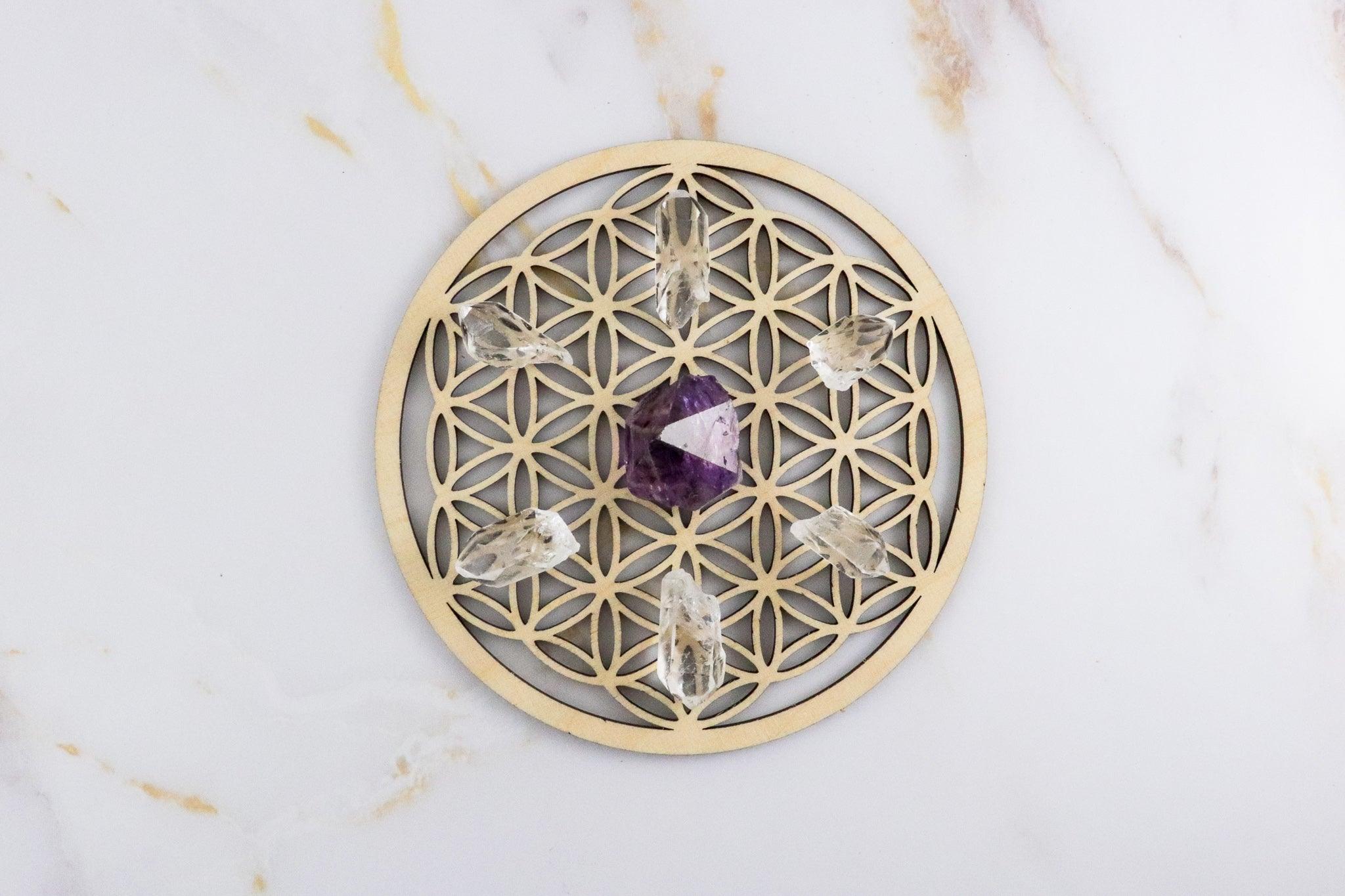 Natural Amethyst points can be used for decoration or to make crystal mandalas.