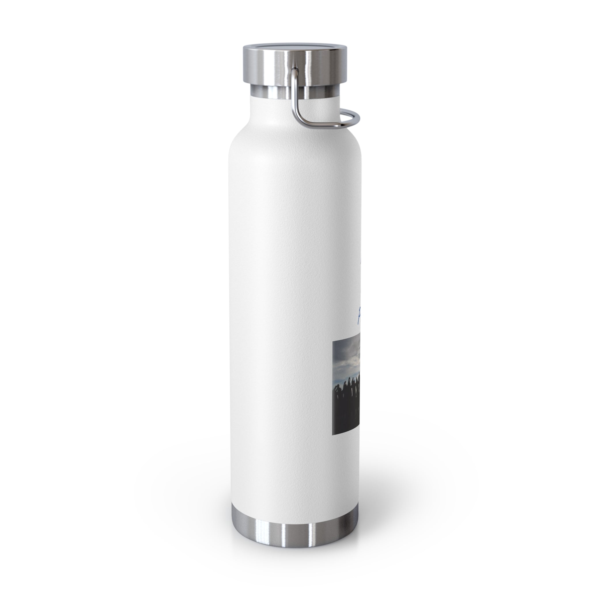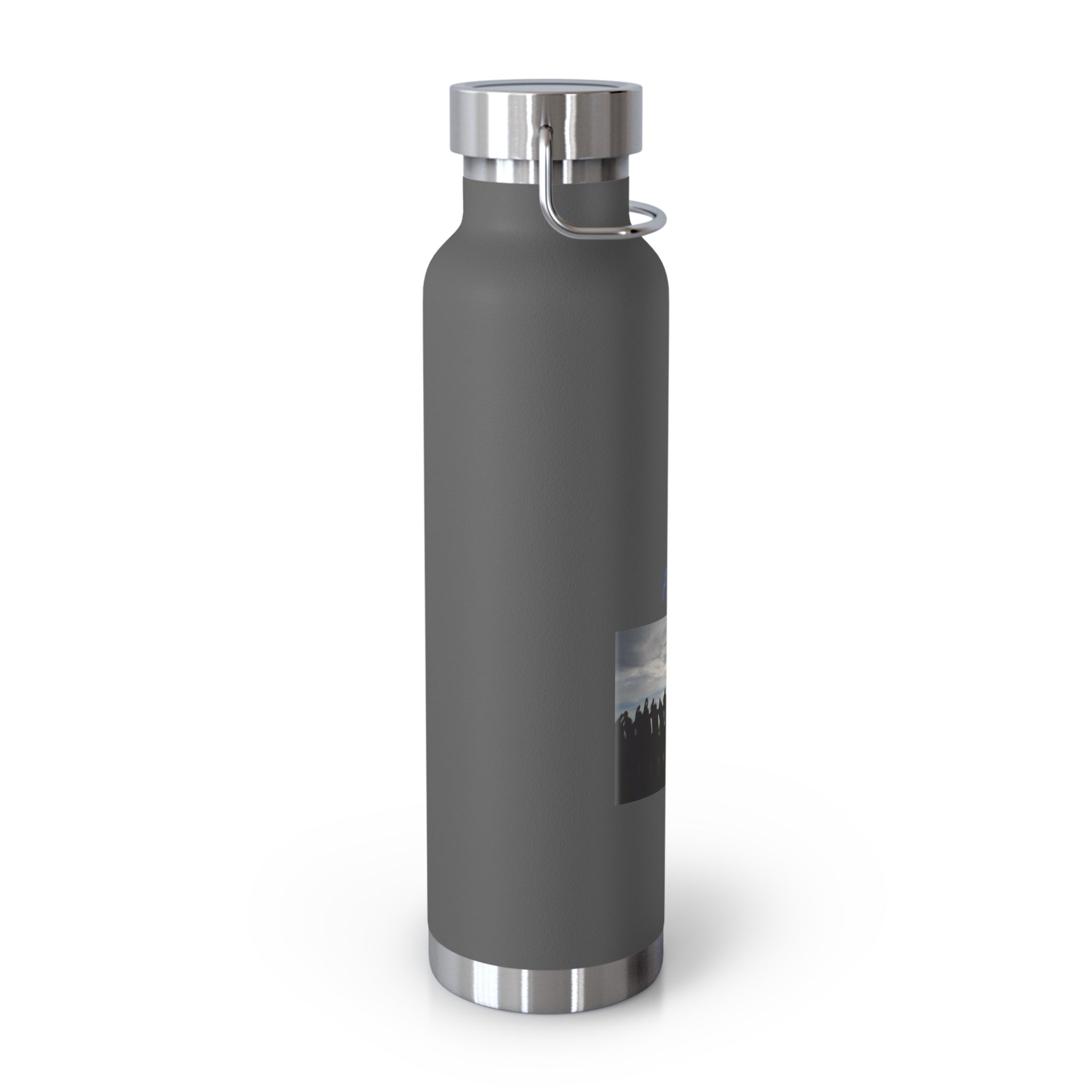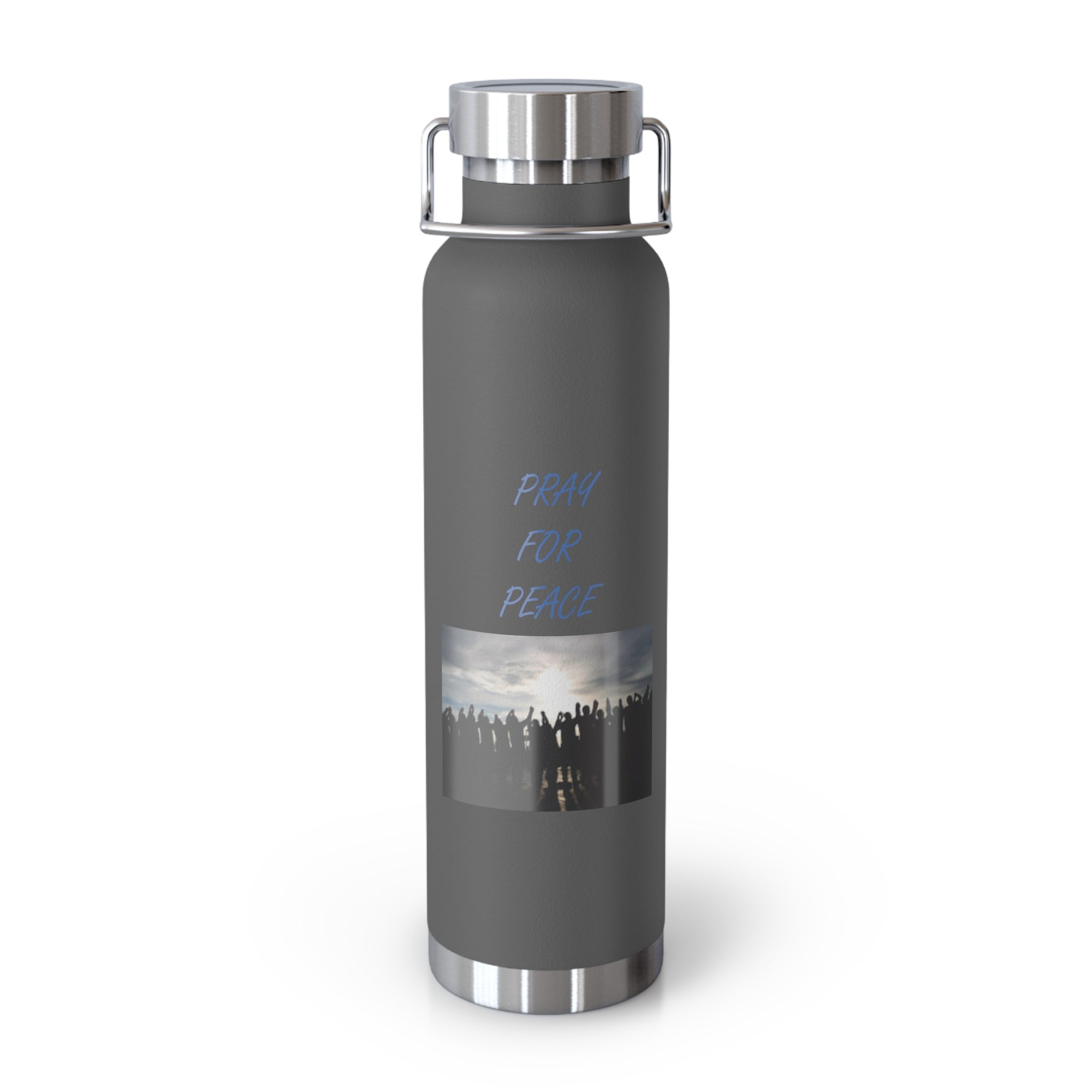 Celebrate peace and unity with this Vacuum Insulated Bottle, featuring the uplifting design: 'Pray for Peace.' The artwork portrays a group of individuals standing together, arms raised toward a radiant rising sun—a symbolic gesture of prayer, hope, and solidarity. Perfect for advocates of harmony and social justice, this bottle carries a message that resonates deeply.