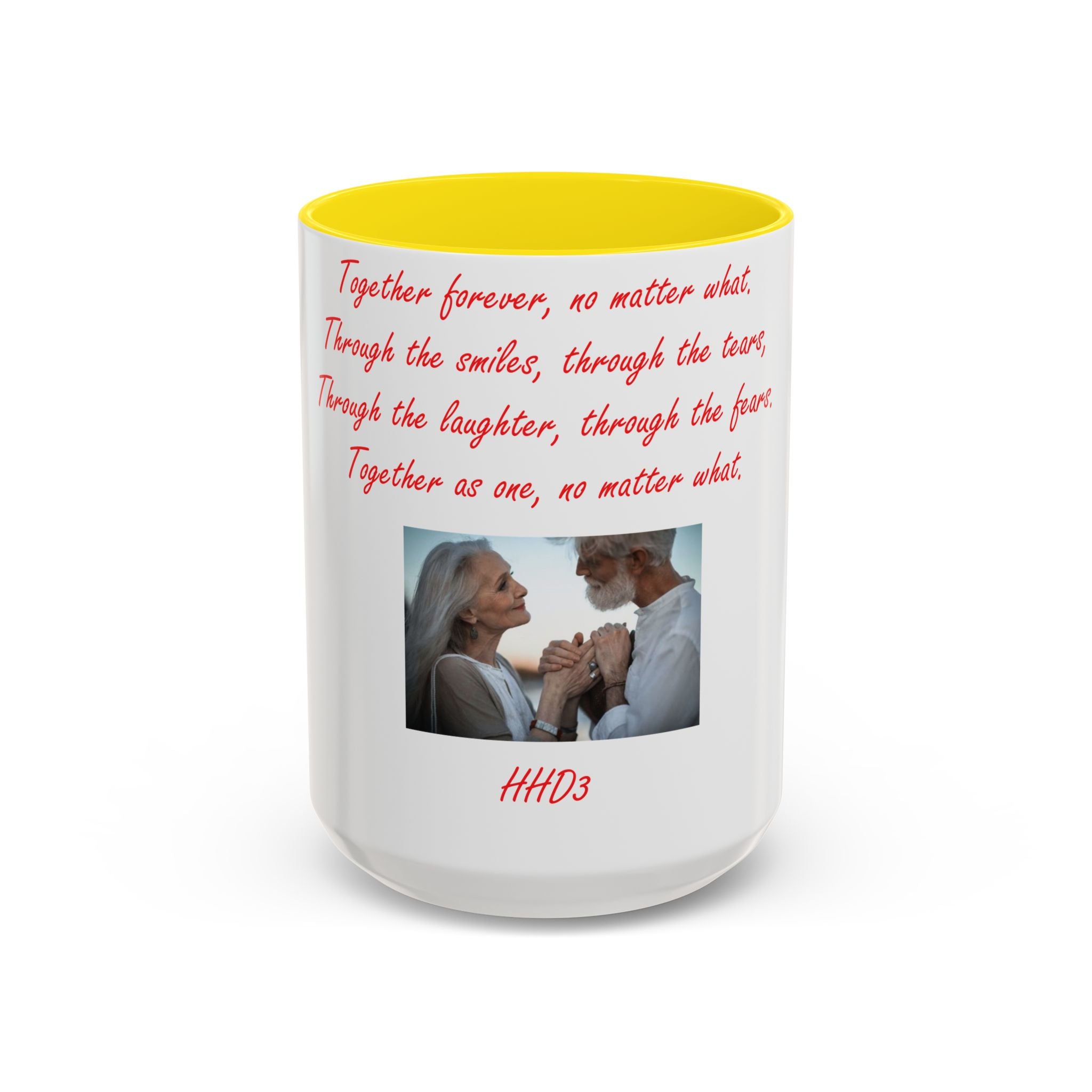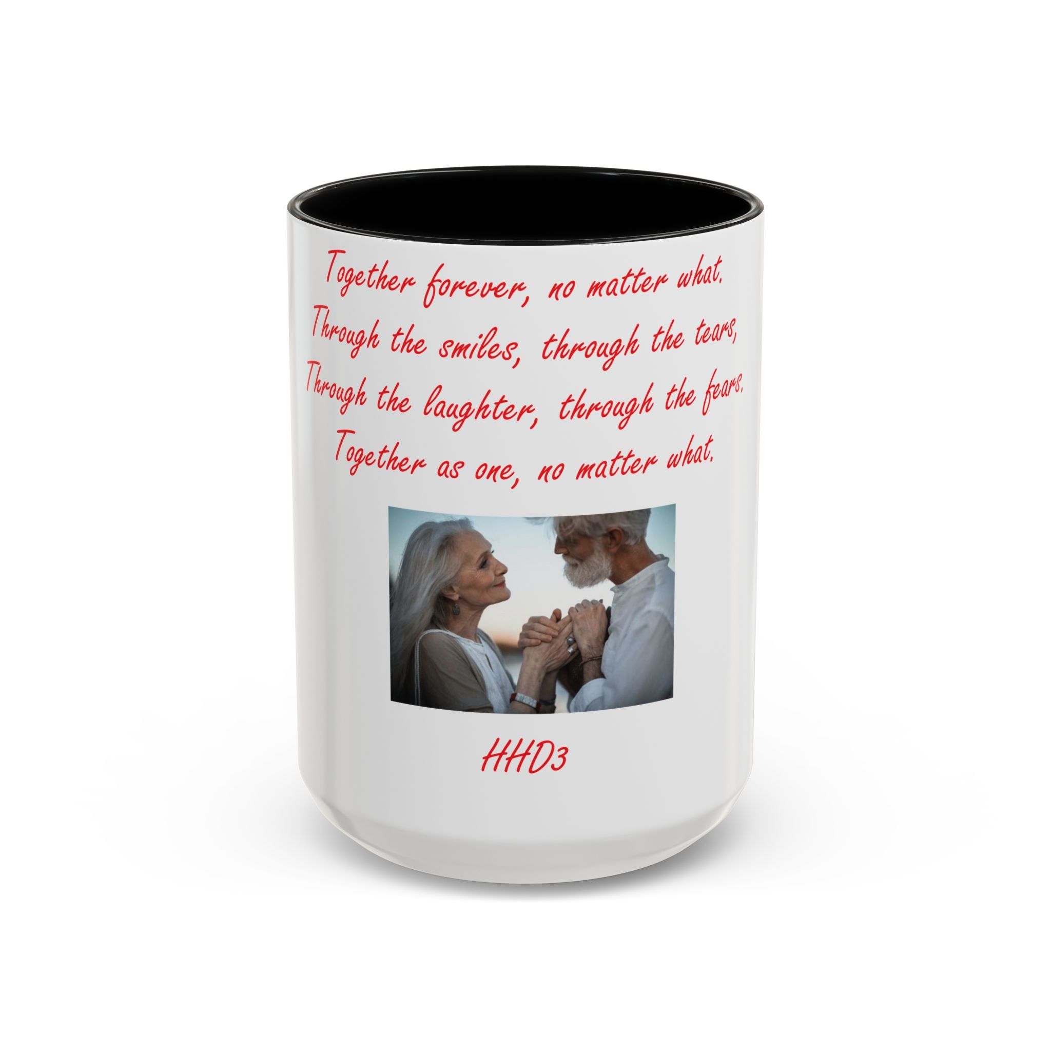 Accompanied by a tender illustration of an elderly couple holding hands, this mug celebrates enduring love and shared journeys. The glossy finish and vibrant color options add charm and warmth, making it a perfect addition to any kitchen or office space.