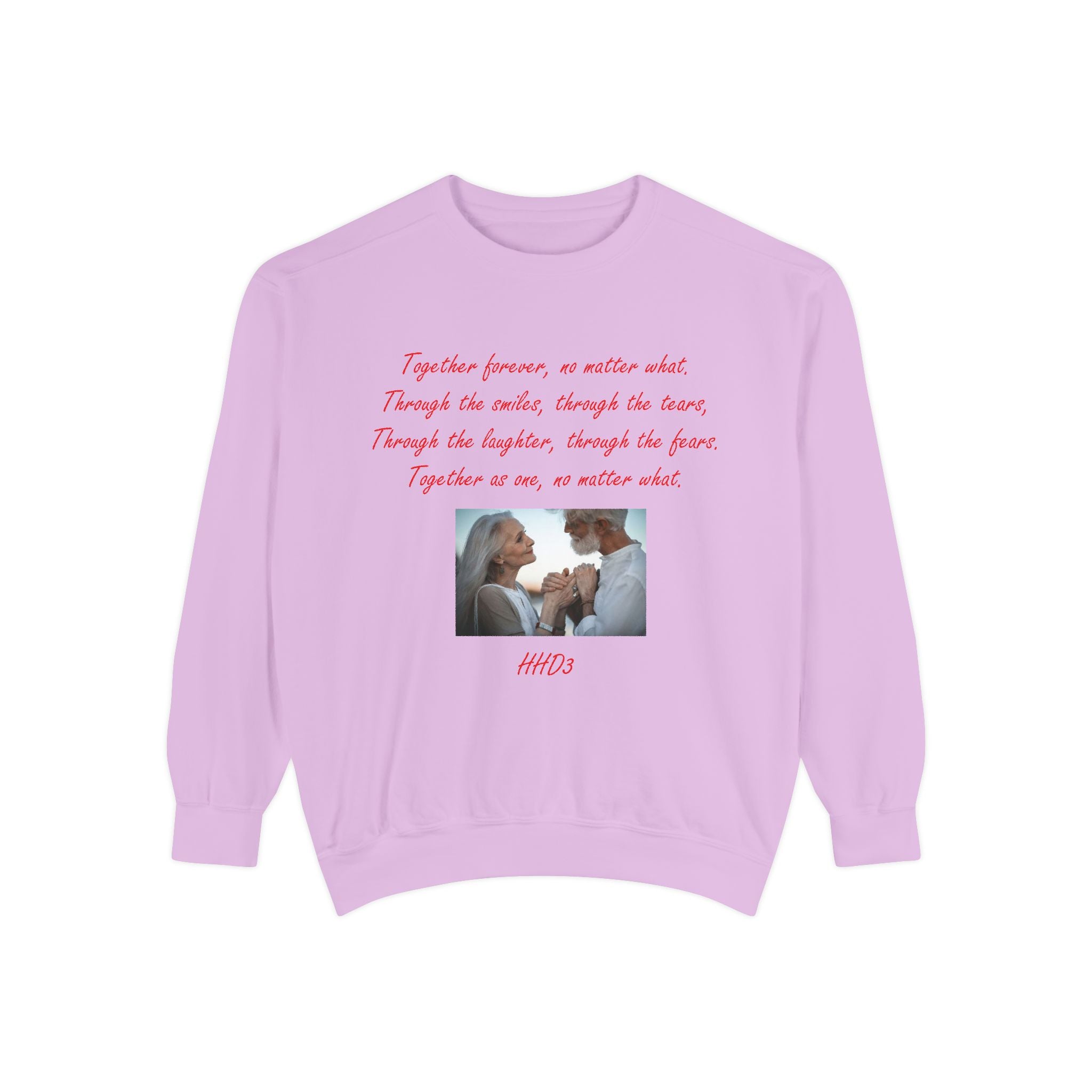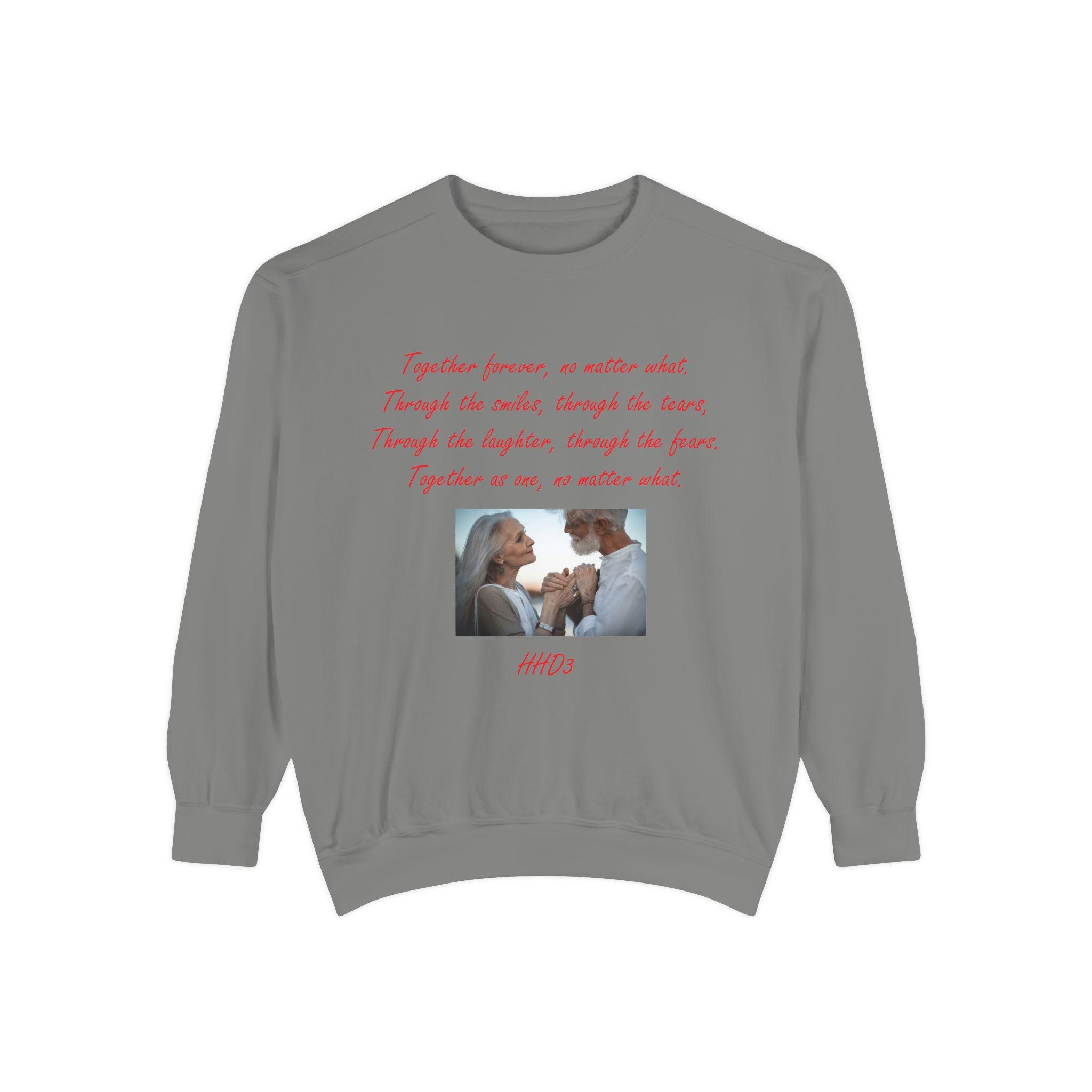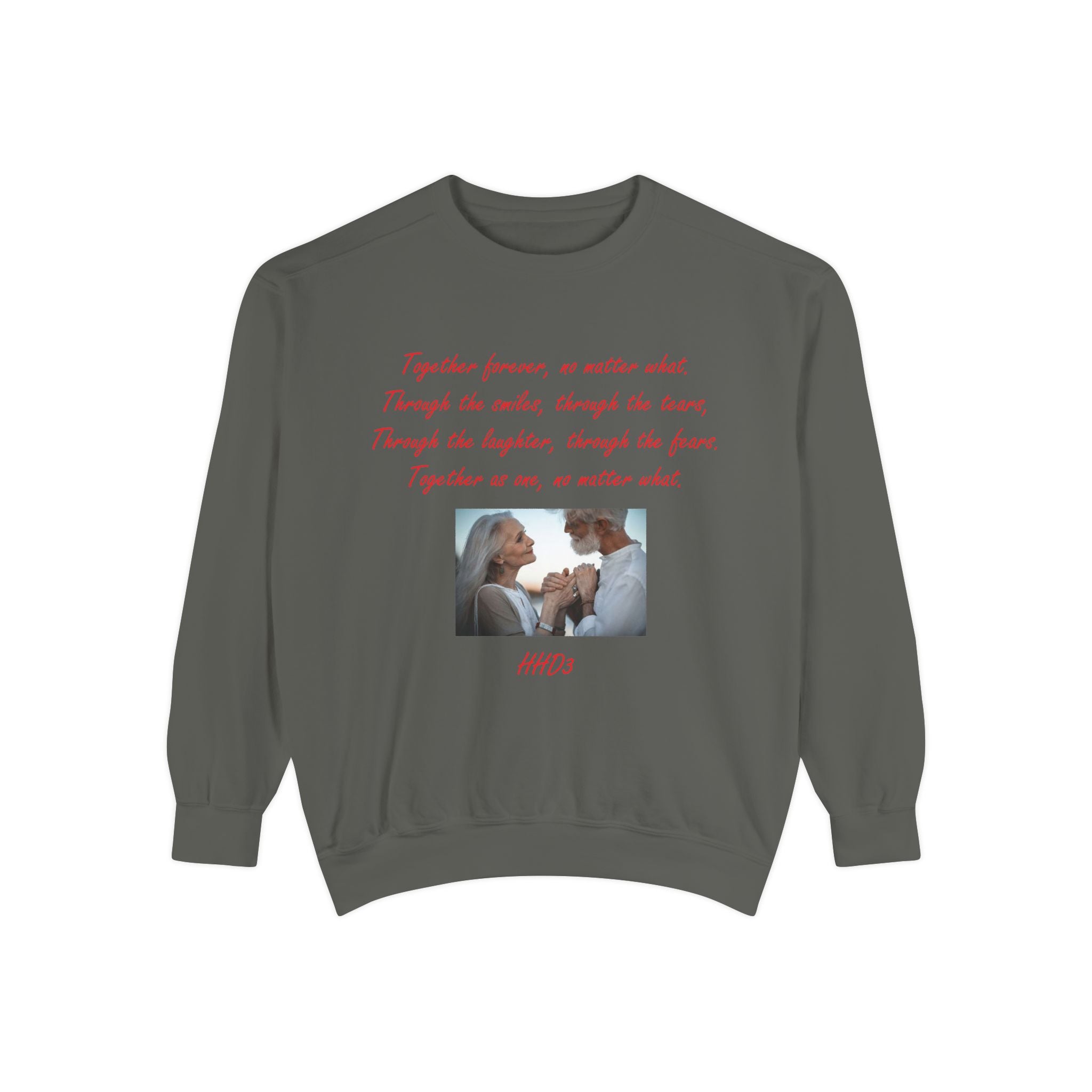 Stay cozy and stylish with this unisex garment-dyed sweatshirt, perfect for any casual occasion. Made from a premium blend of soft cotton and polyester, it wraps you in comfort while showcasing a unique back detail. This sweatshirt radiates warmth and connection, making it an excellent choice for gatherings, relaxed weekends, or cozy evenings at home. Ideal for couples, families, or friends who cherish shared moments, it’s a fantastic gift for anniversaries, Valentine's Day, or just to celebrate everyday bonds. Embrace a vibe of unity and love with this versatile piece, designed to fit seamlessly into your life, whether you're lounging, out on the town, or making memories during the holidays.