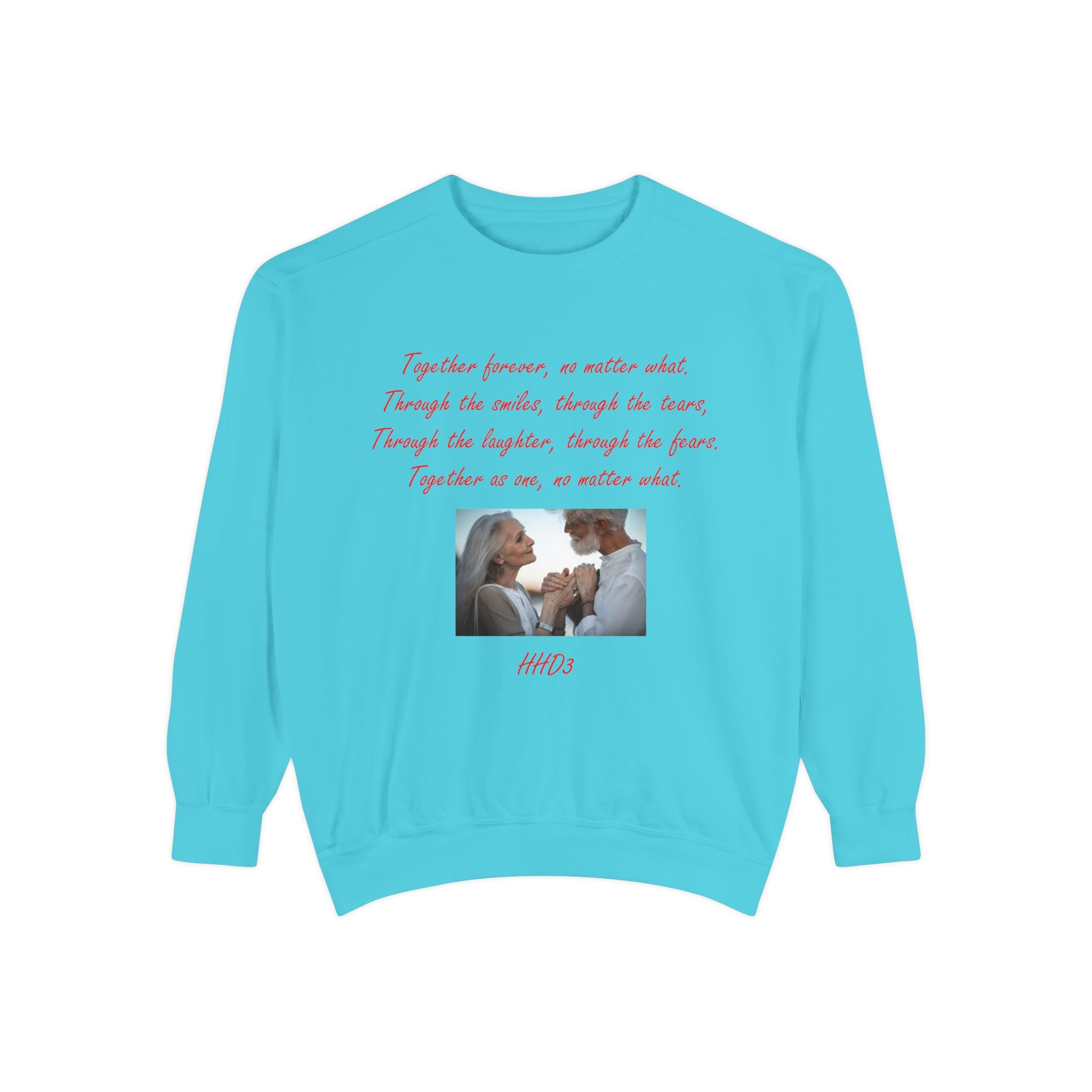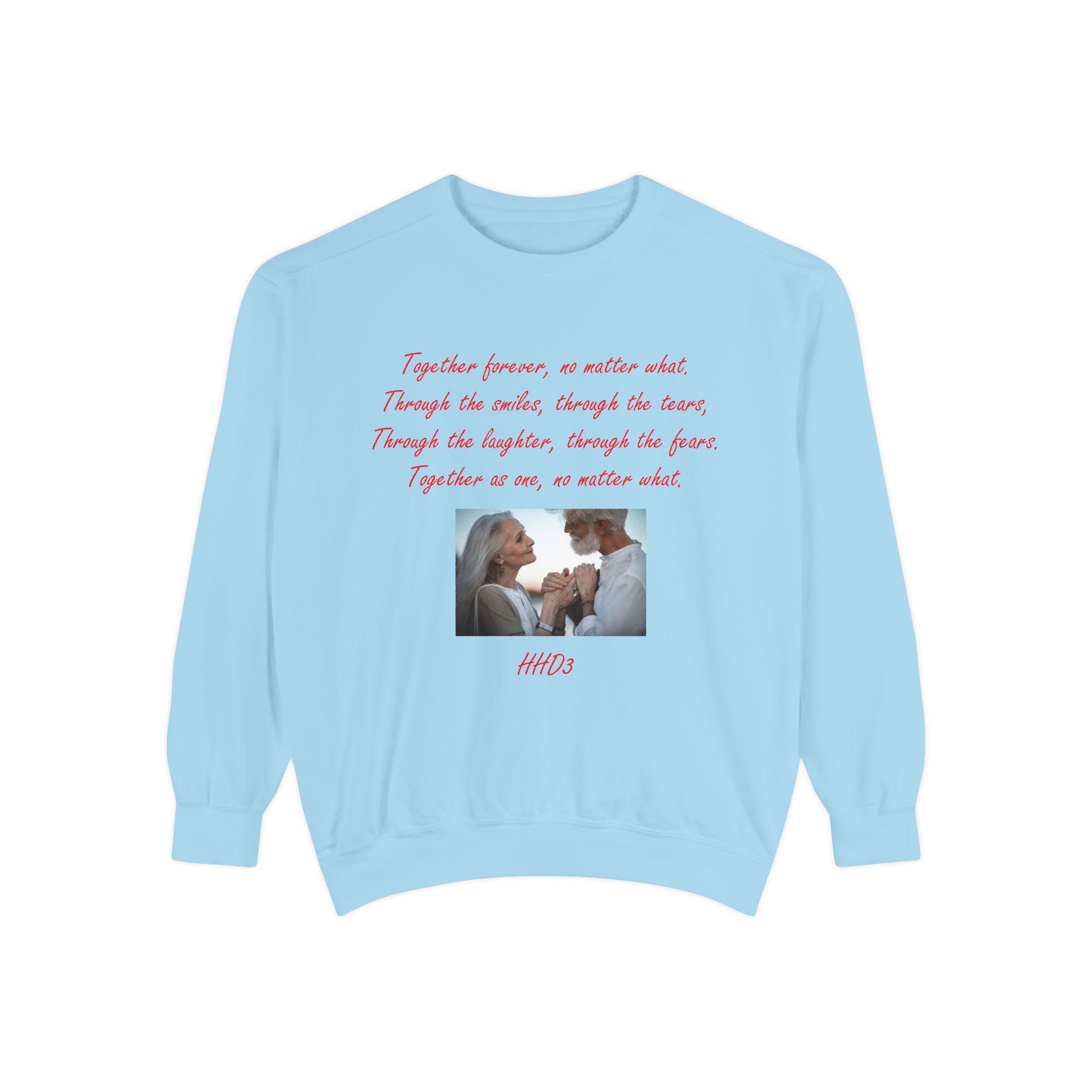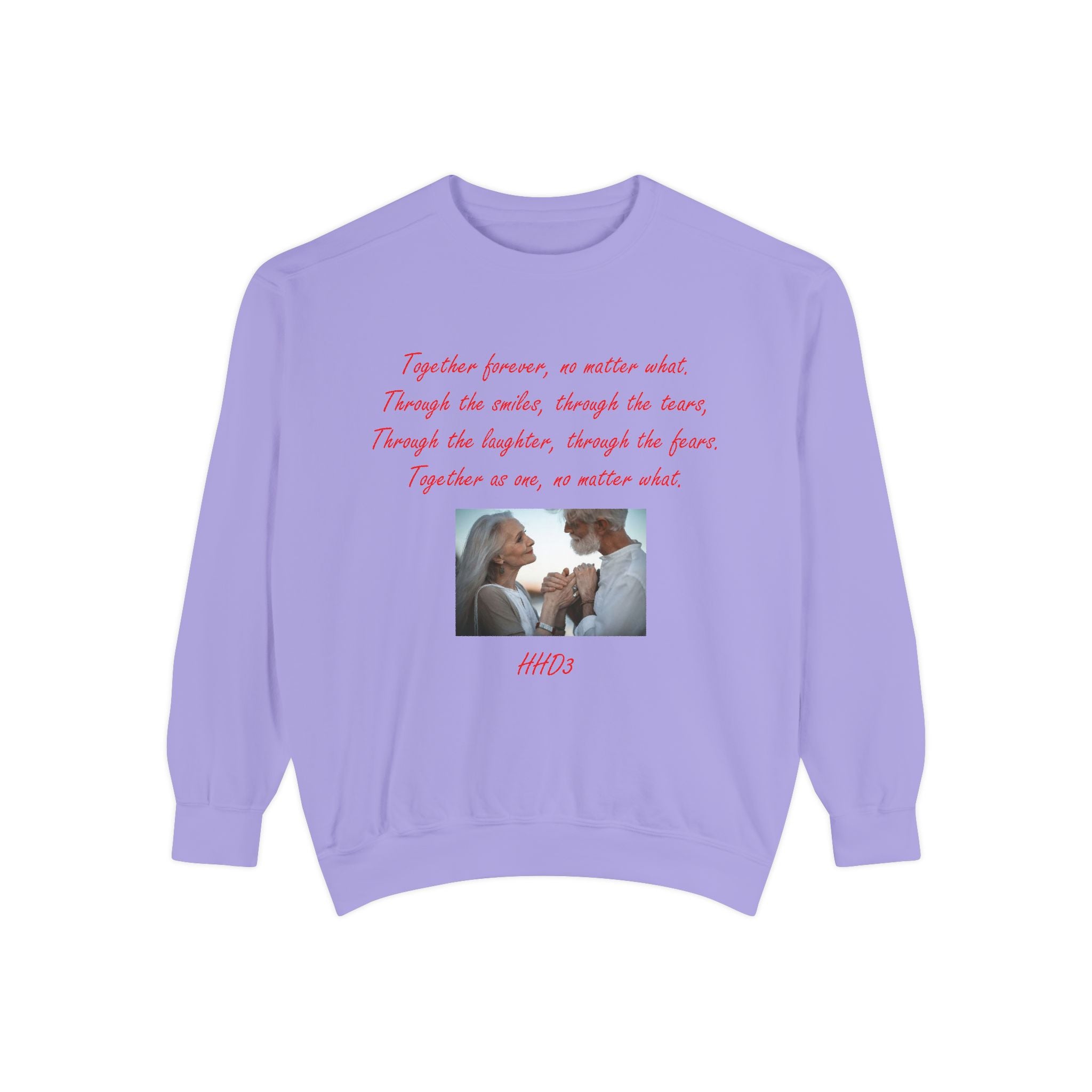 Stay cozy and stylish with this unisex garment-dyed sweatshirt, perfect for any casual occasion. Made from a premium blend of soft cotton and polyester, it wraps you in comfort while showcasing a unique back detail. This sweatshirt radiates warmth and connection, making it an excellent choice for gatherings, relaxed weekends, or cozy evenings at home. Ideal for couples, families, or friends who cherish shared moments, it’s a fantastic gift for anniversaries, Valentine's Day, or just to celebrate everyday bonds. Embrace a vibe of unity and love with this versatile piece, designed to fit seamlessly into your life, whether you're lounging, out on the town, or making memories during the holidays.