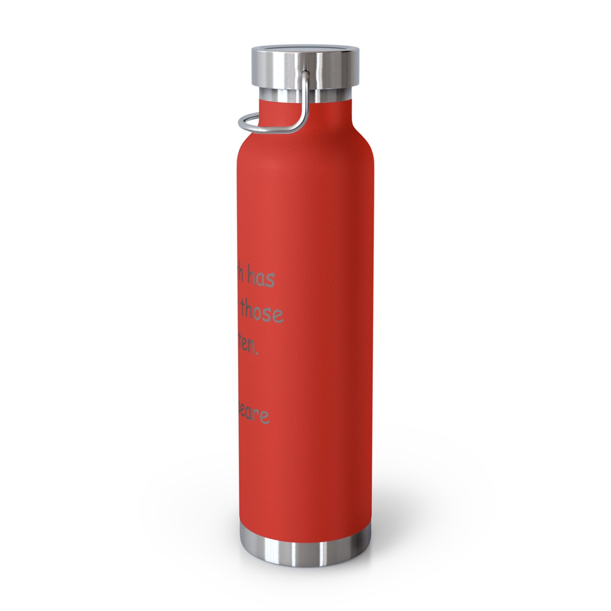Stay refreshed with purpose and elegance using our Copper Vacuum Insulated Bottle, adorned with a timeless quote attributed to Shakespeare: 'The earth has music for those who listen.' This design inspires connection to the harmony of the natural world, making every sip a thoughtful moment.