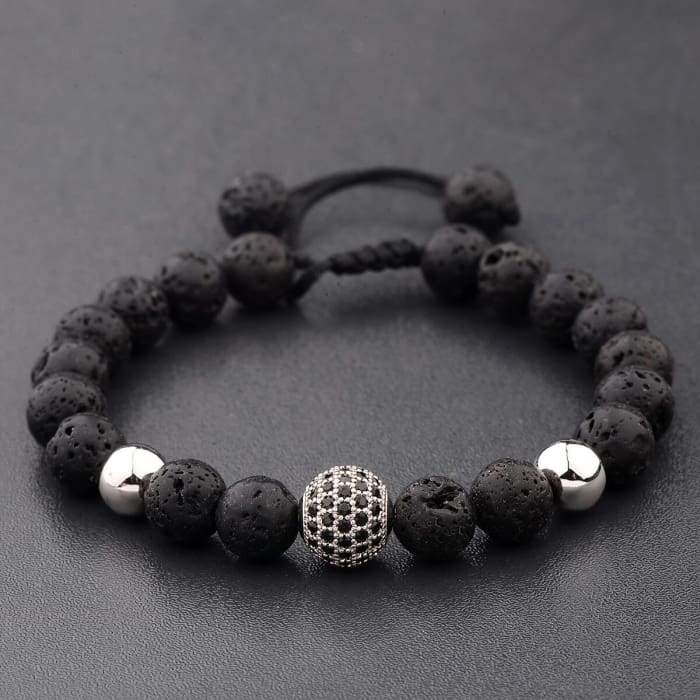 Crystal Ball Silver Lava Stone Bracelet