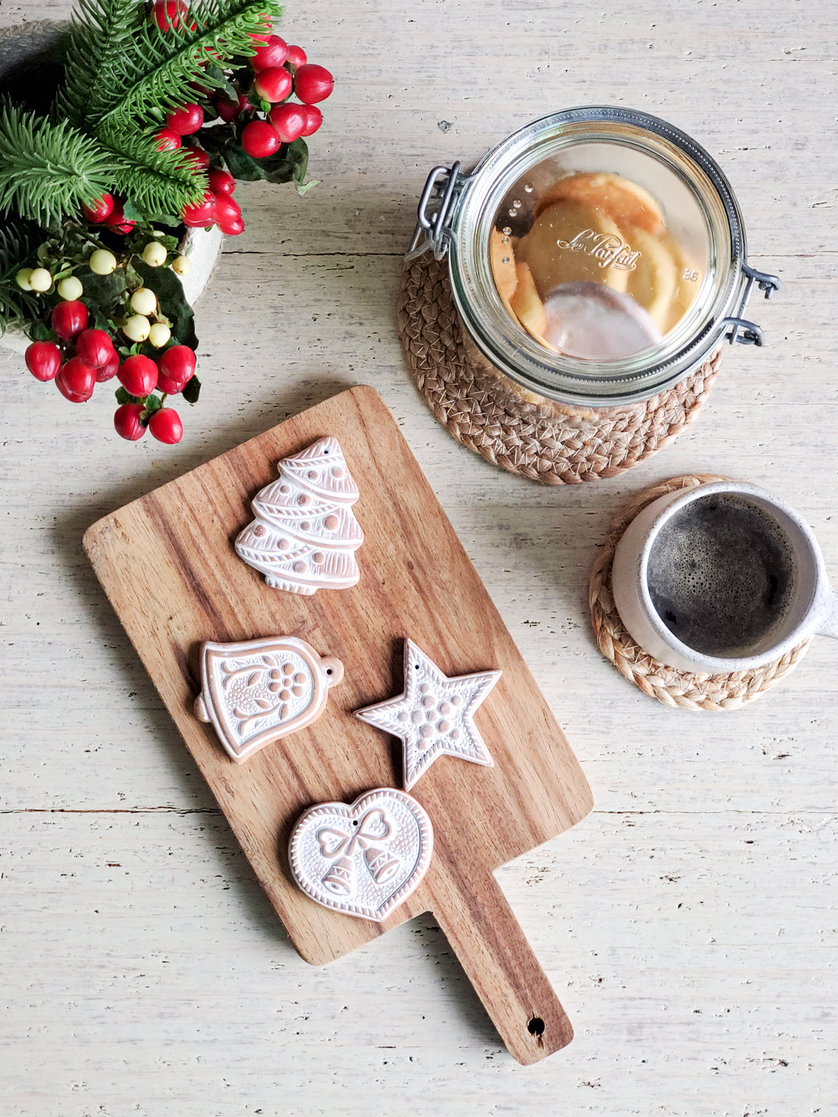 Never have hard brown sugar again! Handmade from terracotta earthenware clay, a sugar saver is a small piece of terracotta designed to maintain desirable moisture levels in brown sugar for approximately 3 to 6 months. Sugar savers are so versatile. The sugar saver comes with a natural jute rope attached, and during the holiday season, a set of four different clay can be used as Christmas ornaments. These clay brown sugar savers make a unique and thoughtful gift in a housewarming basket, Christmas stocking, or gift hamper.