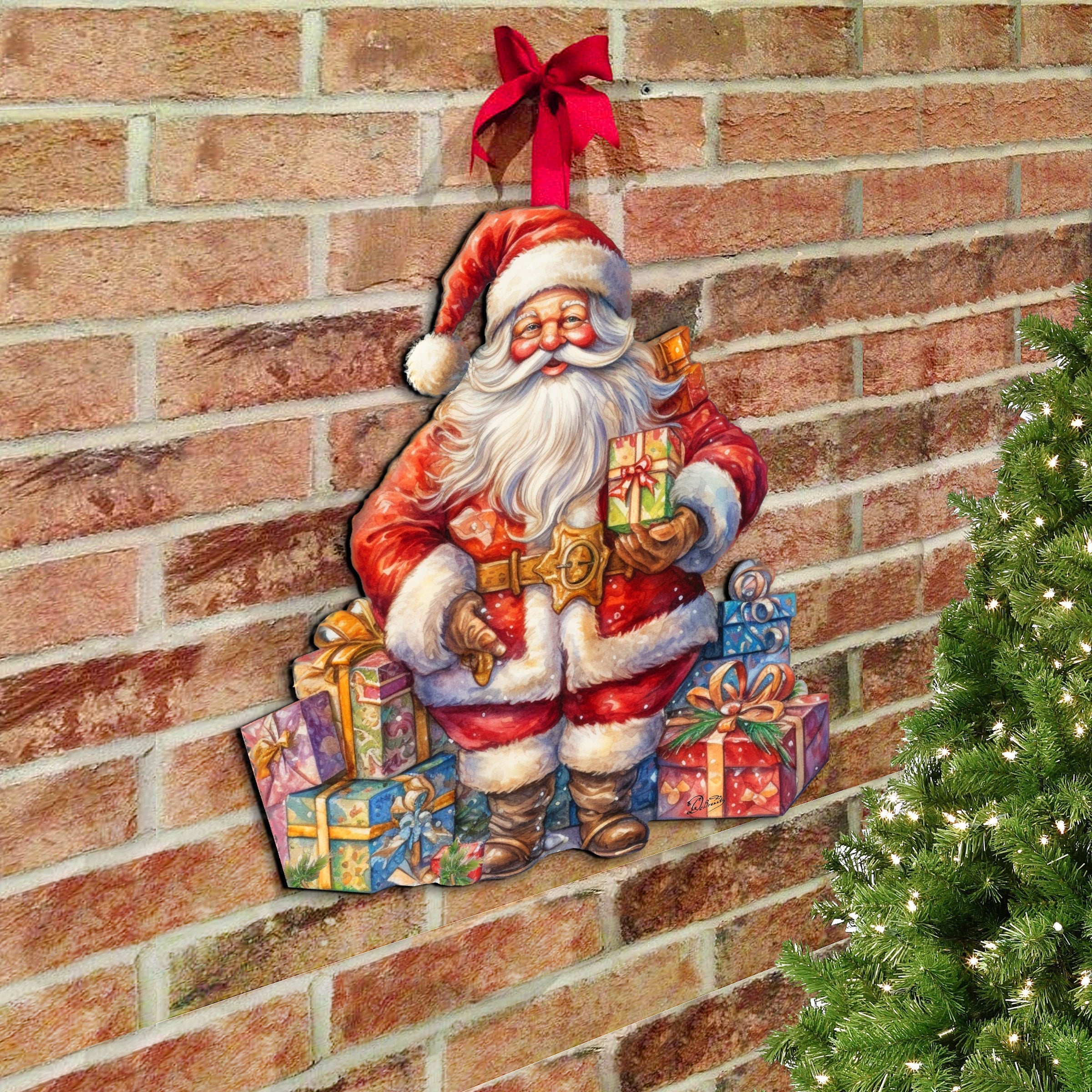 G. Debrekht's Joy of Giving Holiday Door Decor is the perfect festive addition to your home. Detailed with carrying gifts Santa, this heirloom quality wooden door decoration will add a touch of holiday cheer to your home year after year.
