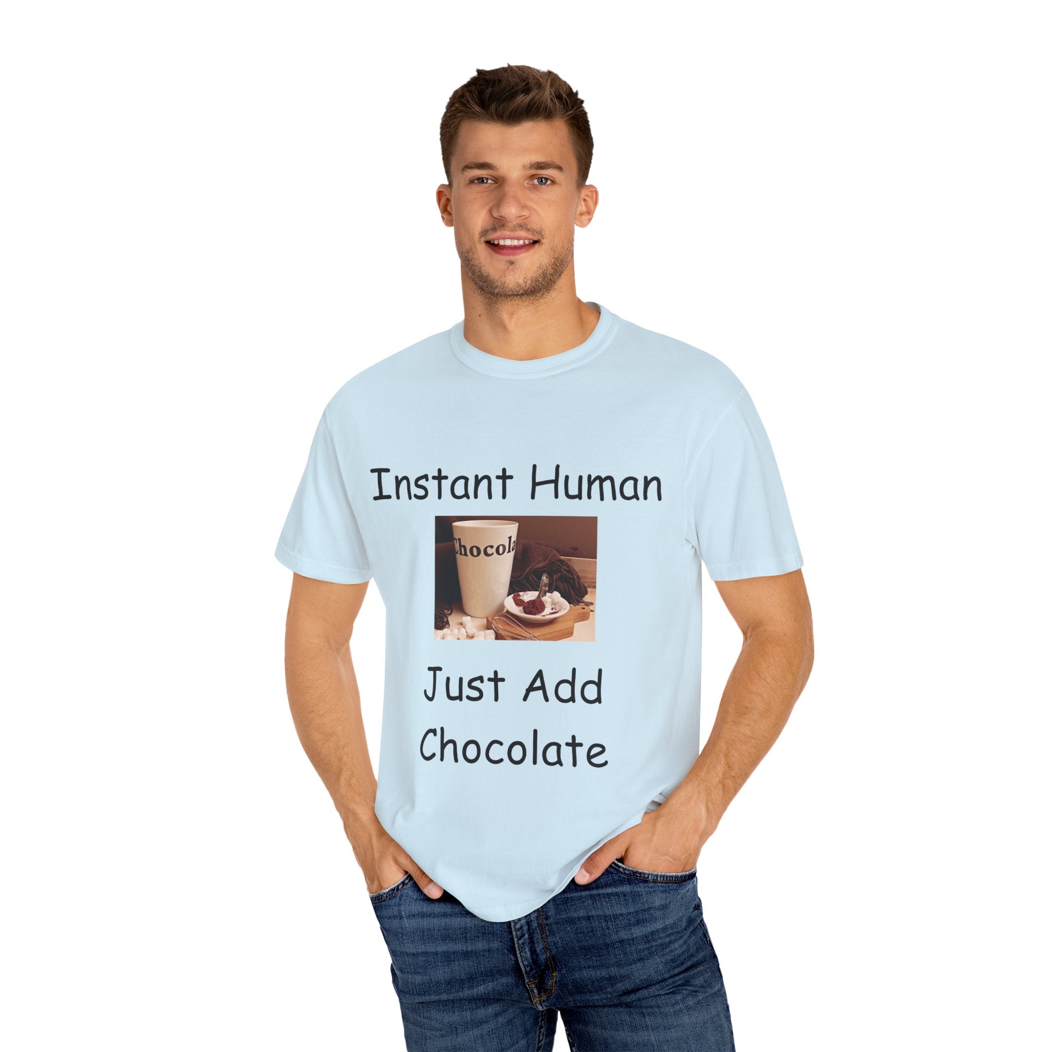 Introducing a delightful Unisex Garment-Dyed T-shirt that brings a smile to your everyday wardrobe. This shirt is perfect for chocolate lovers and those who enjoy a touch of humor in their style. Crafted for all-day comfort, it offers a relaxed fit that suits both casual get-togethers and semi-formal outings. Available in a stunning array of 58 colors, this T-shirt allows you to express your personality effortlessly.