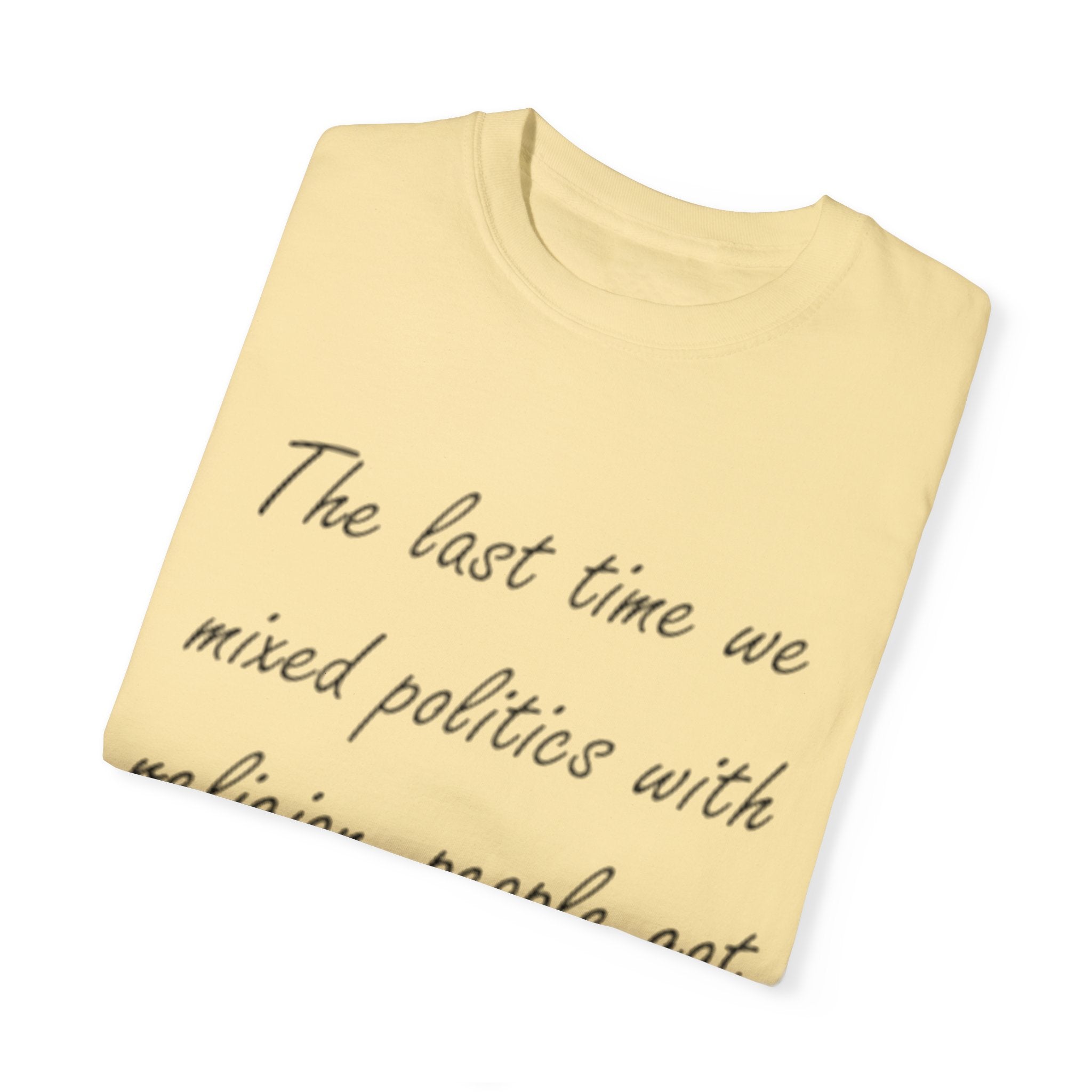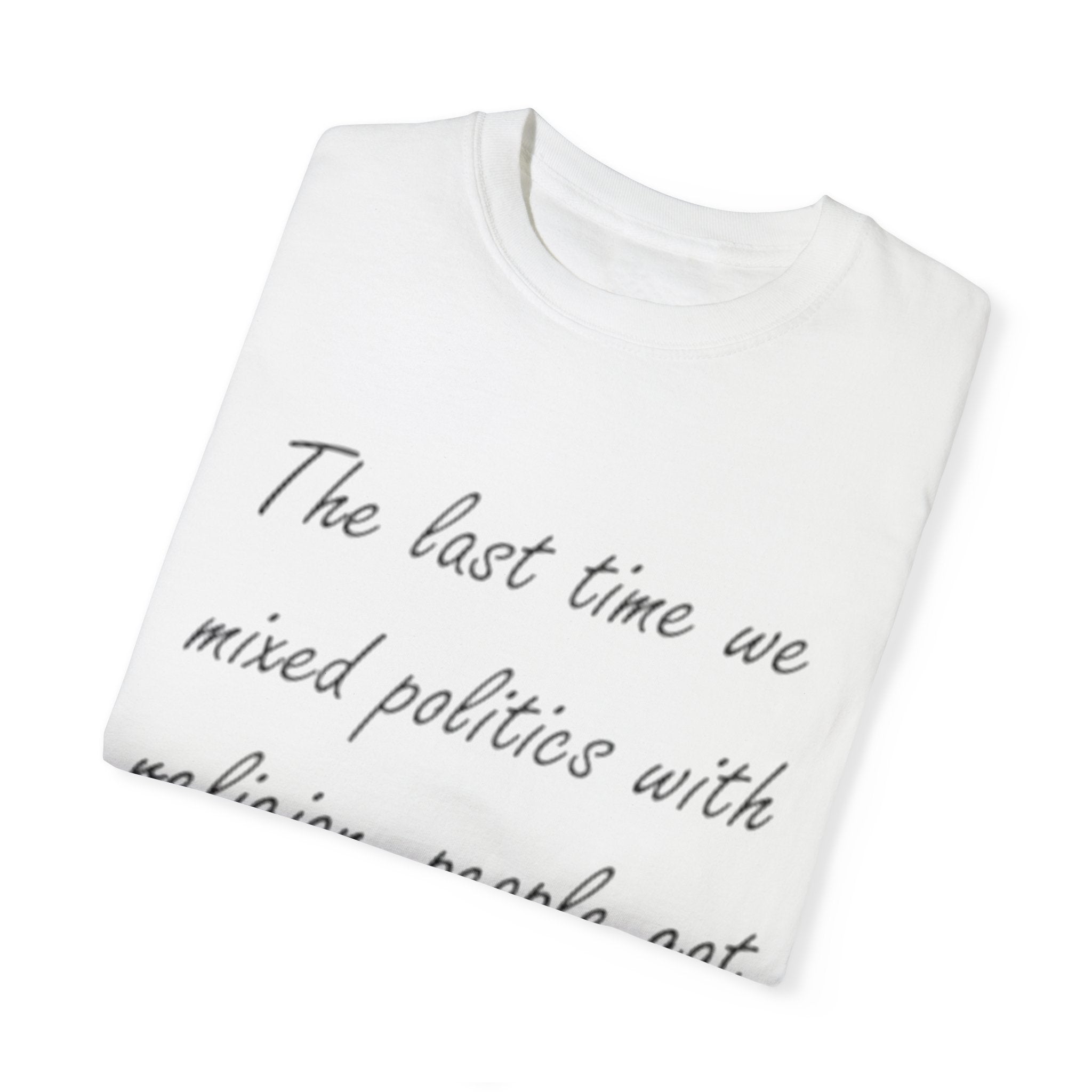 Introducing a versatile Unisex Garment-Dyed T-shirt, perfect for making a statement while ensuring comfort. This tee brings a relaxed and laid-back vibe, making it an ideal addition to your casual wardrobe. Whether you're heading out with friends, lounging at home, or attending a casual gathering, this shirt merges style with ease. It’s particularly relevant for those who appreciate thoughtful commentary, making it a great gift for activists, free thinkers, or anyone who enjoys meaningful dialogue. Perfect for holidays, social gatherings, or just everyday wear, this T-shirt resonates with those who value both comfort and a strong message.