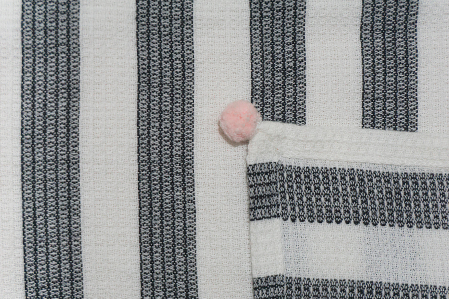 A hyper-absorbent waffle weave kitchen towel in cheerful stripes with soft cotton pompoms on all 4 corners.For any Priority Shipping... Read more